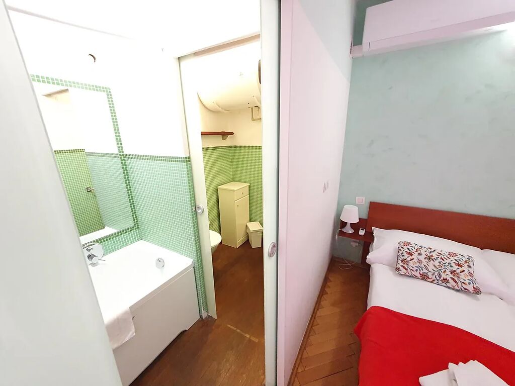 Pěkný vybavený mezonetový byt s balkonem 2+kk 34 m2, Praha 1 - Nové Město, v obývacím pokoji rozkládací sedačka, kuchyňská linka, koupelna s vanou, klimatizace.