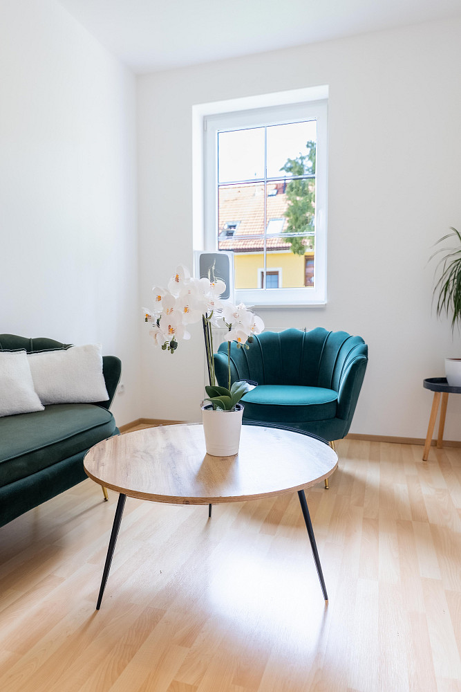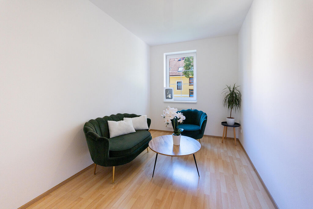 Slunný obývací pokoj s jihozápadní orientací – ideální pro relax i setkávání.