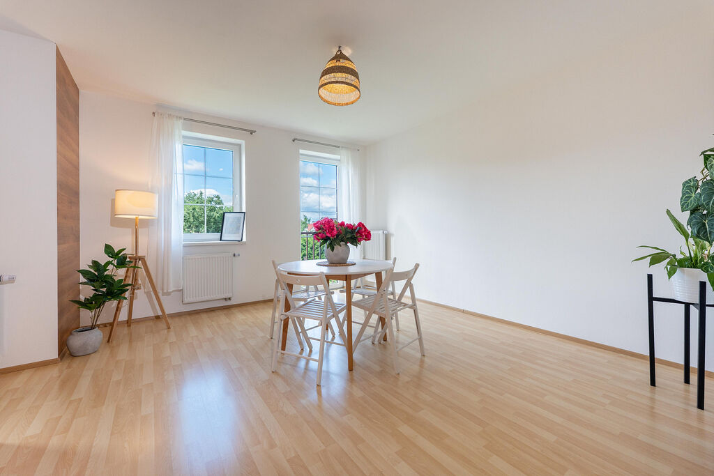 Světlý a promyšleně řešený byt 3+kk o ploše cca 63 m² se nachází v 1. patře cihlového domu v jedné z nejžádanějších lokalit u Českých Budějovic – v Dobré Vodě. Kombinuje klid u potoka a zeleně s rychlým dosahem města.