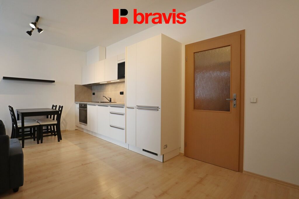 Nabízíme k pronájmu kompletně zařízený byt 1+kk v Brně Líšni na ulici Jírova. Byt o velikosti 40 m2 se nachází ve 2. NP obytného domu. Vlastní parkovací stání se nachází přímo v suterénu domu. K bytu náleží i sklepní kóje.