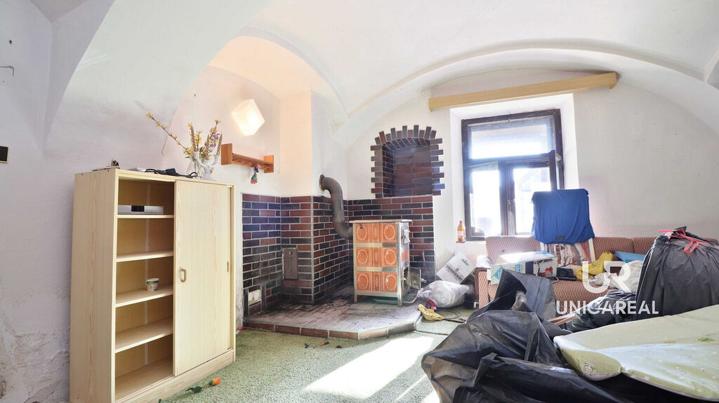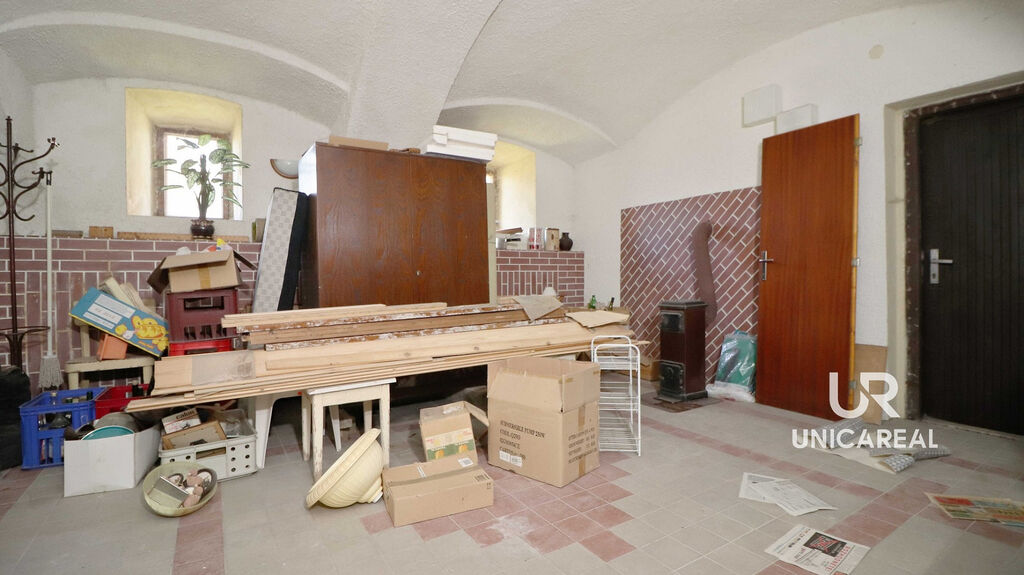 Okna plastová a dřevěná, kastlová. Podlahy betonové. Stropy klenuté a sádrokarton.