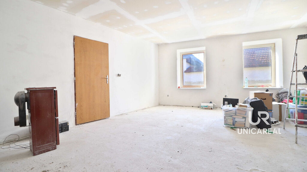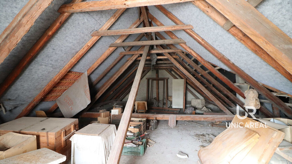 Prostorná půda nad celým objektem nabízí možnost vybudování obytného podkroví.