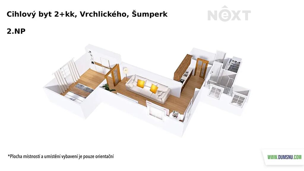 Nabízíme k prodeji velmi příjemný byt 2+kk o velikosti 50 m2, umístěný ve 2. NP cihlového domu v