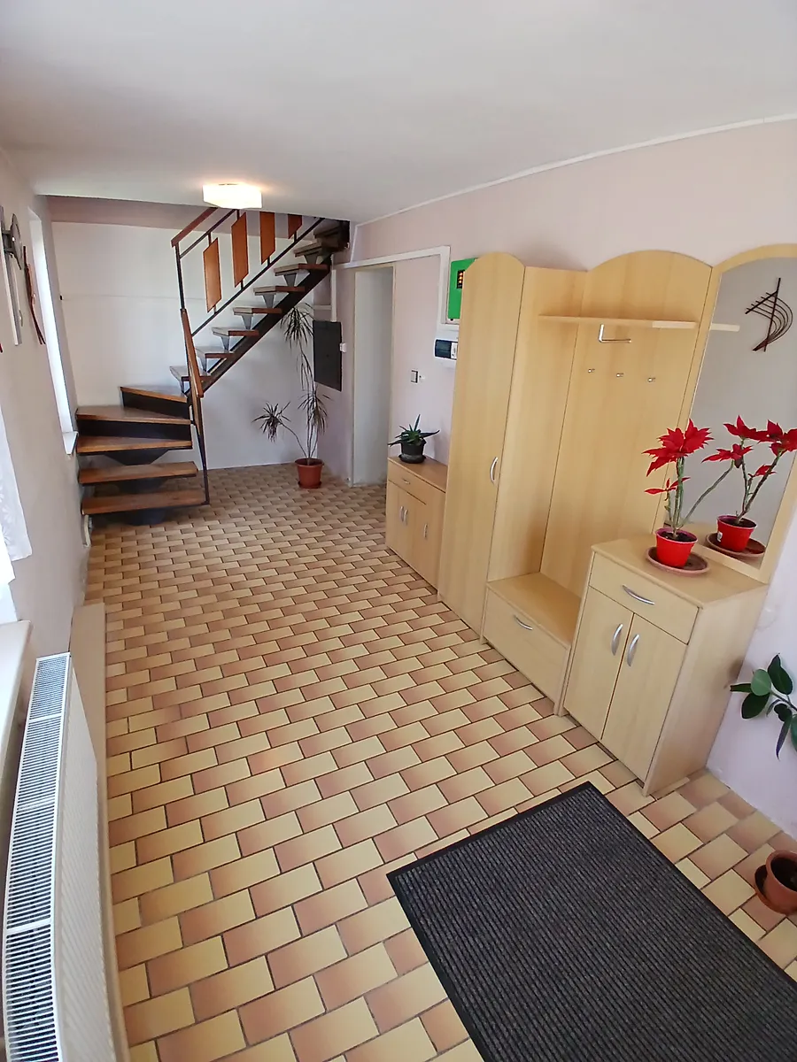 V rodinném domě jsou 2 samostatné bytové jednotky 3+1 o celkové ploše cca 200m2. Dále k domu náleží uzavřený dvůr, kde pohodlně zaparkujete i nákladní auta. Dále je na pozemku budova, ve které se nachází dílna a 2 propojené garáže (může sloužit také jako sklad).