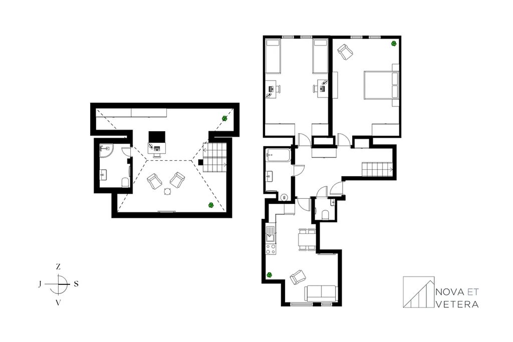 Na stejném podlaží se nachází ještě jeden podkrovní mezonet s dispozicí 5+kk ve stejném standardu. Fotografie u inzerce jsou ilustrační a pocházejí z této jednotky.
