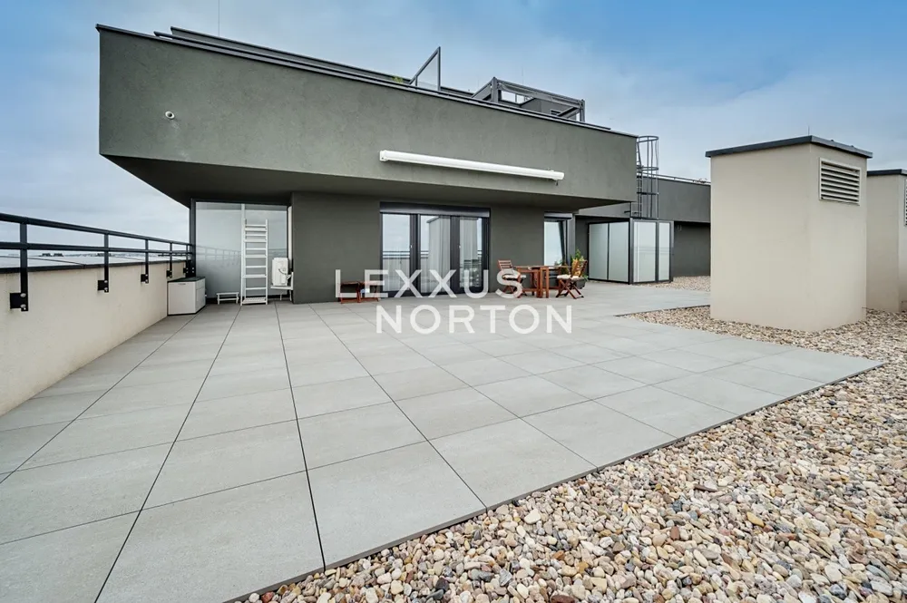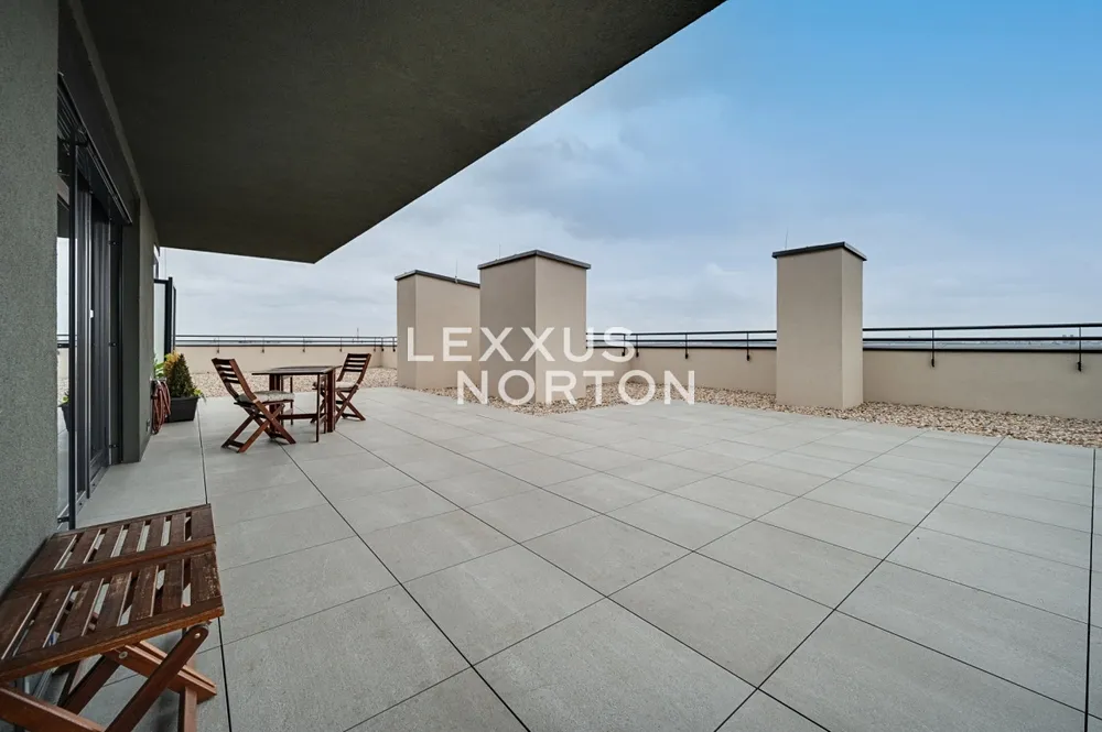 Tento světlý zařízený byt 1+kk o výměře 39 m2, situovaný ve 12. patře domu s výtahem disponuje vzdušným obývacím pokojem (29 m2) s designovým kuchyňským koutem, oddělenou ložnicovou zónou a vstupem na jedinečnou střešní terasu o ploše 173 m2. K bytu dále náleží moderní koupelna a vstupní hala.