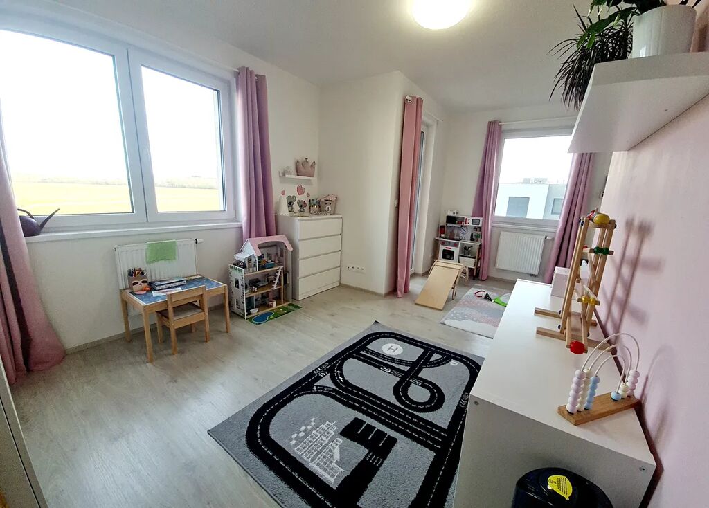 Prostorný byt se dvěma balkóny, sklepem a rozšířeným garážovým stáním, situovaný ve 2.patře novostavby s výtahem v žádané lokalitě pražských Letňan, s dobrou dostupností ke stanici metra C Letňany. Byt sestává ze vstupní haly s vestavěnou šatní skříní, samostatného WC s místem na pračku, koupelny s vanou a WC, ložnice se šatnou, dětského pokoje se vstupem na balkón a obývacího pokoje s kuchyňským koutem a vstupem na balkón. Vybaven může zůstat kuchyňskou linkou s vestavěnými spotřebiči: sklokeramickou varnou deskou, elektrickou troubou, mikrovlnnou troubou a myčkou, dále vestavěnou šatní skříní a vybavenou šatnou v ložnici. Klidné prostředí, byt je světlý, jižně orientovaný. K bytu přísluší prostorný sklep a nadstandardně široké garážové stání.