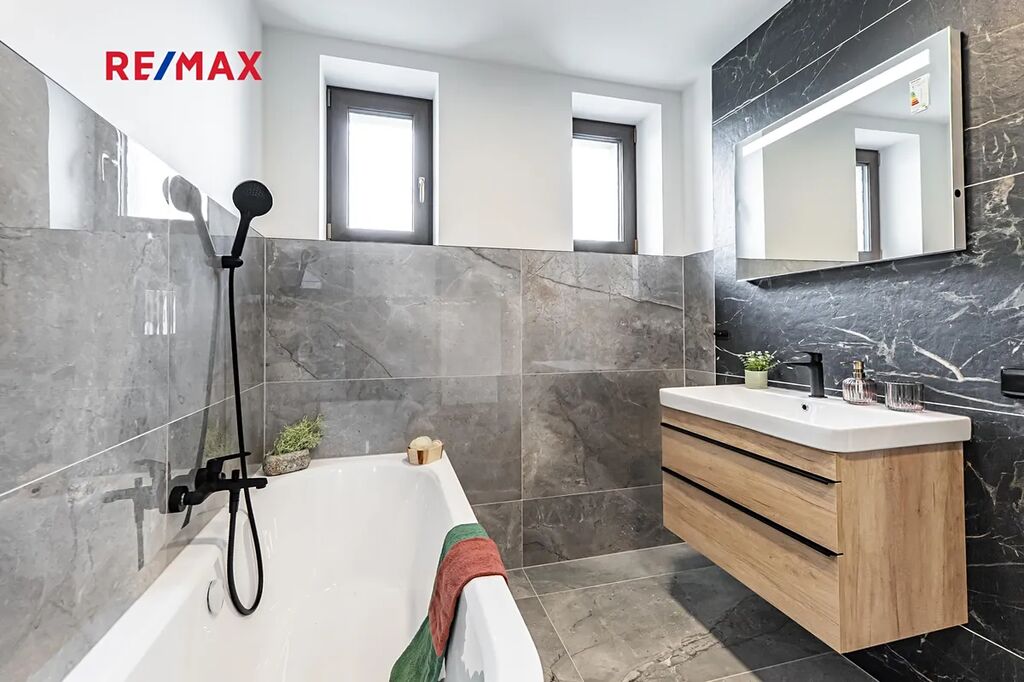 V patře se nachází další ložnice s balkonem, koupelna s vanou, praktický kumbál a tři další místností. V jedné z nich je navíc příprava na druhou kuchyni – ideální pro dvougenerační bydlení nebo při rozdělení domu na dvě bytové jednotky.