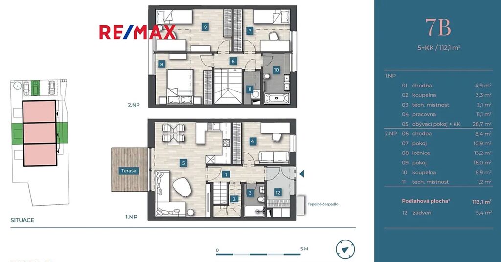 Každý dům nabízí do detailu promyšlenou dispozici 5+kk - 4 samostatné pokoje, obývací pokoj s kuchyňským koutem, 2 koupelny a technickou místnost. Venku posedíte na terase či na zahradě a před domem zaparkujete dva své vozy.