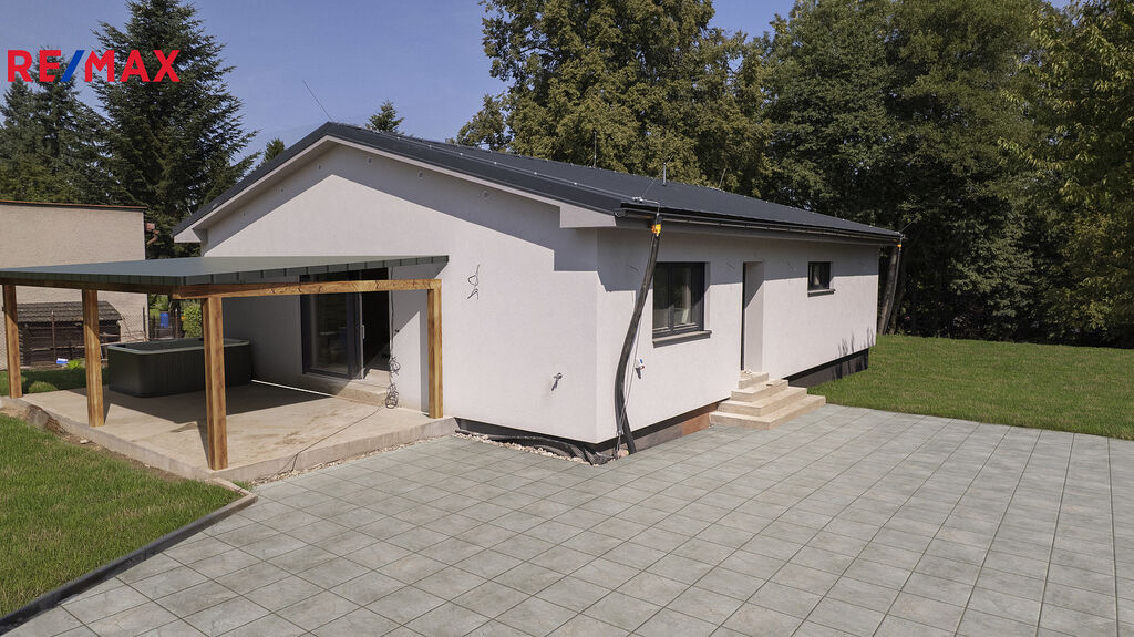 • Přímý vstup z obývacího pokoje propojeného s kuchyní a jídelnou na zastřešenou terasu