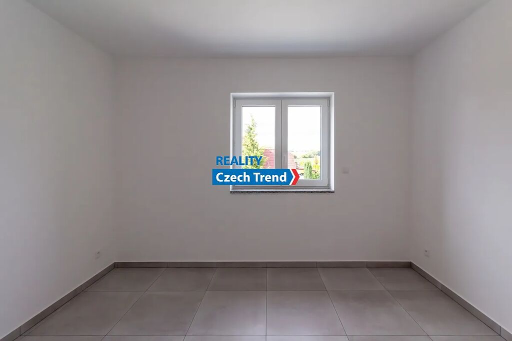 Poslední dva volné domy z osmi! Nabízíme Vám k pronájmu zcela nový moderní řadový rodinný dům 4+kk s garáží a venkovním parkovacím stáním pro jedno až dvě auta v rámci developerského projektu v obci Bystročice nedaleko Olomouce. Velmi nízké nájemné je nižší, než nájemné srovnatelně velkého bytu s garáží v Olomouci. Měsíční zálohy na elektřinu vč. topení jsou cca 4.000,- Kč, na vodu cca 1.000,- Kč. Celková velikost pozemku k domu je včetně zastavěné plochy 234 m². Dům je postaven z cihel Porotherm, okna trojskla zn. Schüco, značkové armatury Hansgrohe. V přízemí domu je vstupní chodba, koupelna se sprchovým koutem, umyvadlem, toaletou a přípojkou na pračku, technická místnost s tepelným čerpadlem o výkonu 8 kW, značky Nibe F 2040-8 + VVM 225 s bojlerem o obsahu 180 l, kuchyňský kout s kuchyňskou linkou s vestavnými nerezovými spotřebiči a přípravou na myčku, obývací pokoj s francouzským oknem a vstupem na částečně zastřešenou terasu a bezúdržbovou zahradu, schodiště do patra. V patře domu jsou tři ložnice, šatna a koupelna s vanou, umyvadlem, toaletou, bidetem a přípojkou na pračku. V celém domě včetně garáže je na podlaze dlažba s teplovodním podlahovým vytápěním. Dům je připojen na optický kabel, rozvody internetu a TV signálu jsou v každém pokoji.