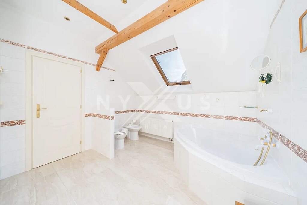 V patře o užitné ploše 82 m² se nachází prostorná hala, koupelna s vanou a dvě útulné ložnice, z nichž každá má vlastní balkon o velikosti 3 m² a kamna na dřevo.
