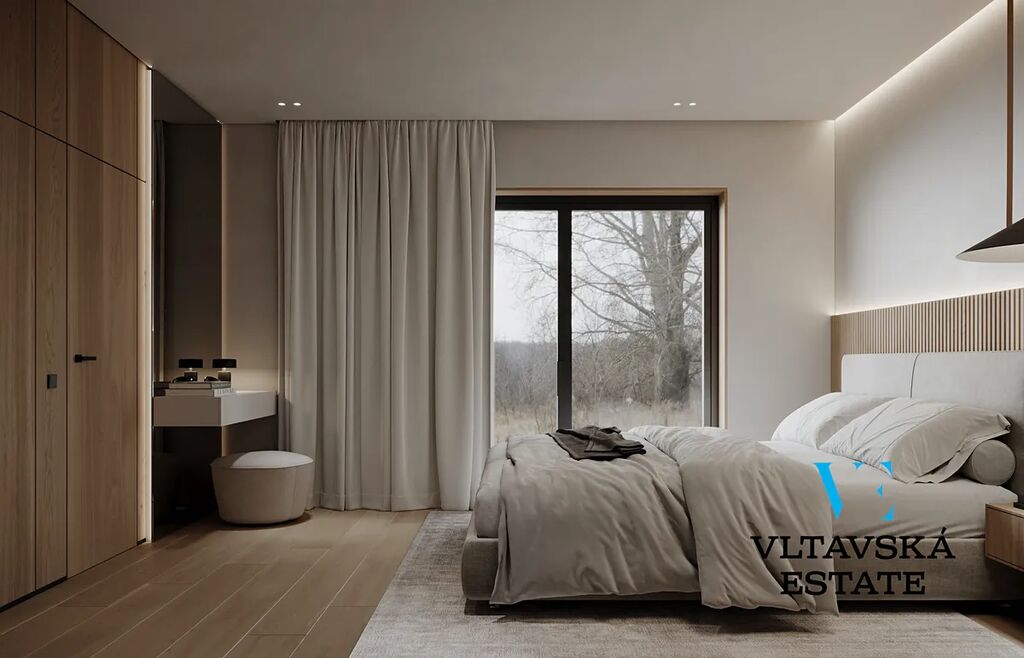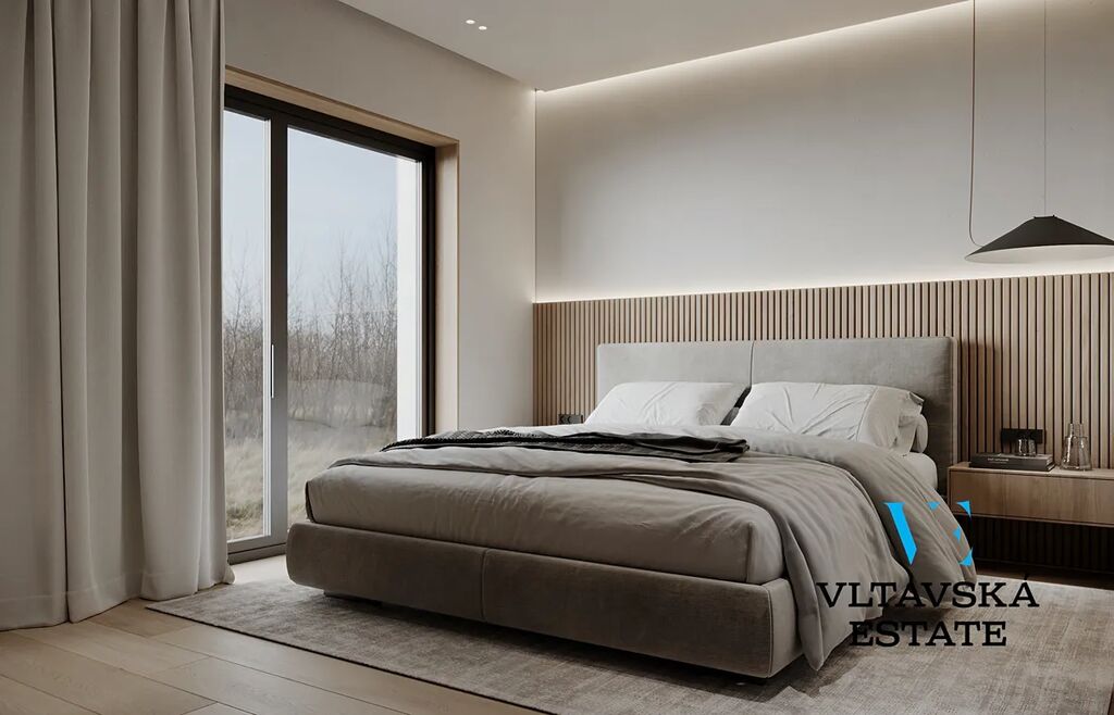 Ve výhradním zastoupení nabízíme novostavbu bytové jednotky s terasou a vlastní zahradou v klidné lokalitě Libčice nad Vltavou. Byt o dispozici 5+KK se v přízemí sestává ze vstupní chodby velkorysého obývacího pokoje s kuchyňským koutem, pokoje, technické místnosti a toalety. V patře nad schodištěm je chodba, tři samostatné ložnice, jedna s vlastní šatnou a koupelnou se sprchovým koutem a toaletou, dále společná koupelna s vanou a toaletou a technická místnost. Z obývacího pokoje je vstup velkými balkonovými dveřmi na terasu a zahradu, která je orientována jižním směrem. K dispozici jsou v ceně dvě parkovací místa před domem. Stavba domu včetně vnitřních příček je cihlová (Porotherm). Vytápění a ohřev teplé vody je řešen plynovým kotlem. Dům je dále napojen na obecní vodovod a kanalizaci. Zastřešení domu je navrženo sedlovým krovem s krytinou z plechového střešního panelu. Okna jsou plastová s izolačními trojskly, rovněž balkonové dveře na terasu jsou plastová. Celý objekt bude opatřen zateplovacím systémem z polystyrenu v tloušťce 180 mm. Výborné vlakové spojení do Prahy – Masarykovo nádraží a Holešovice. V místě kompletní občanská vybavenost a infrastruktura.