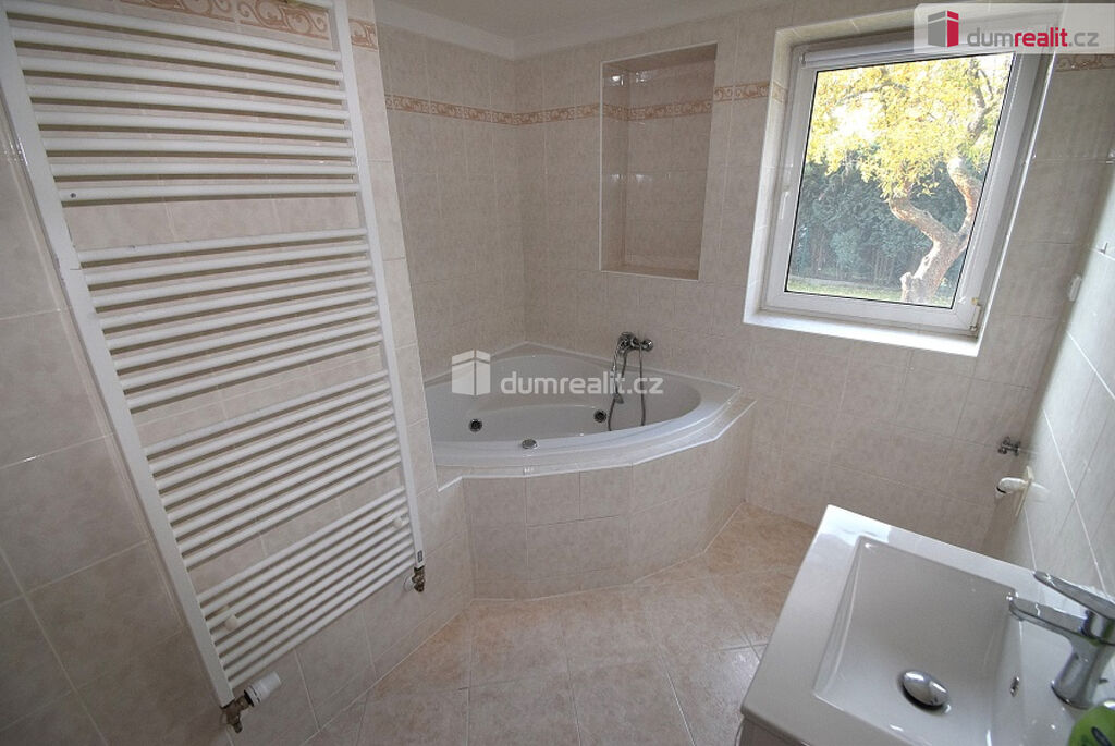 Dlouhodobý pronájem dvoupodlažního rodinného domu s obytnou plochou 150m², terasou a zahradou o velikosti 565m² v žádané lokalitě Jesenice u Prahy. V přízemí místnost s francouzským oknem do zahrady. Kuchyň vybavená novým kombinovaným sporákem s digestoří, myčkou, vestavěnou mikrovlnkou. Koupelna s rohovou vířivou vanou, umyvadlem a podlahovým topením, WC samostatně. Prádelna nebo komora s úložným prostorem. V patře 2 místnosti, 1 průchozí, ze které je vstup na terasu, směřující na západ a úložná půda. Možnost parkování na pozemku nebo před domem. Na pozemku ovocné stromy a zahrada, kterou si můžete utvořit k obrazu svému, příprava na bazén, sklep a kůlna. Klidná lokalita, kousek od rybníku Pančák, oblíbenému na procházky a rybaření. Vlastní topení v domě a ohřev teplé vody zajišťuje plynový kotel s řízením teploty všech místností jednotlivě. Vybavenost: v místě (3 minuty) škola, školka, pošta, 6 dětských hřišť, společenské centrum, restaurace, zastávka BUS PID (5 min.) směr metro C – Budějovická, Opatov. Dále Lidl a Albert (10 min.). Rychlá dostupnost Prahy – nájezd na městský vnější okruh D0/E50 (rychlé spojení na D1 anebo D5). PENB G: průkaz energetické náročnosti nebyl zatím vyhotoven (hodnota bude aktualizována). Cena pronájmu 38000 kč plus záloha na vodu a popelnice 750 kč/1 osobu (každá další osoba + 500 kč). Elektroměr a plynoměr (teplo a TUV) se přepisuje na nájemce. Doporučuji! Ev. číslo: 652990.