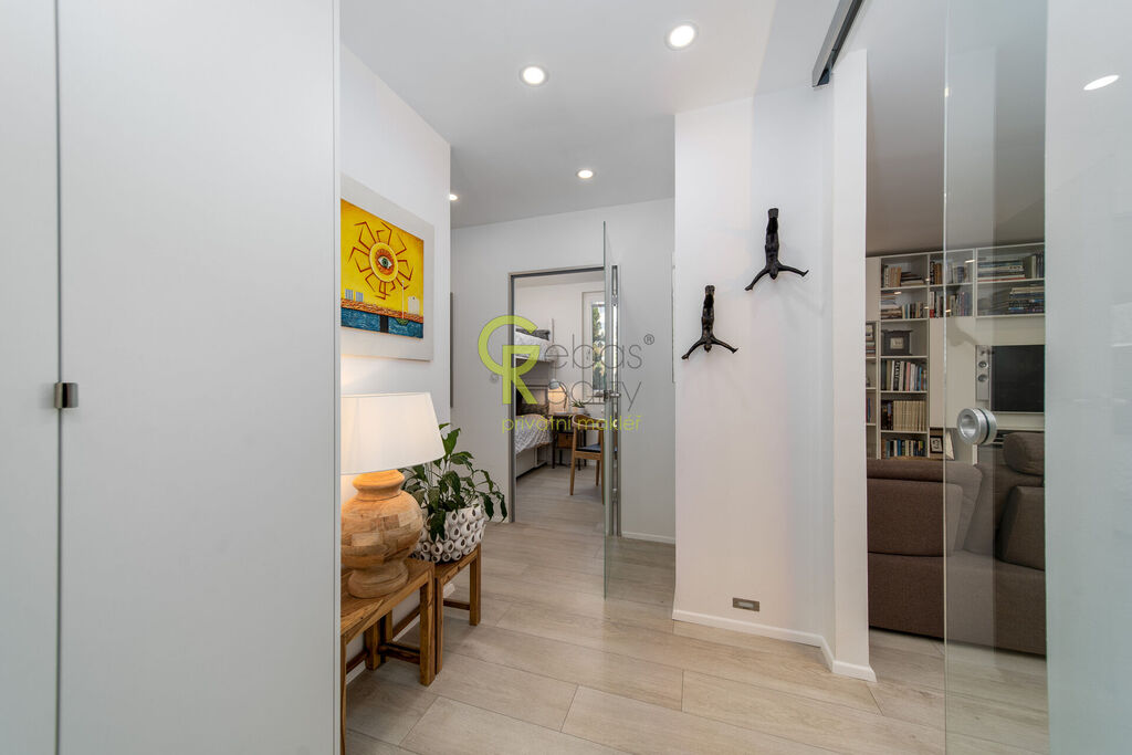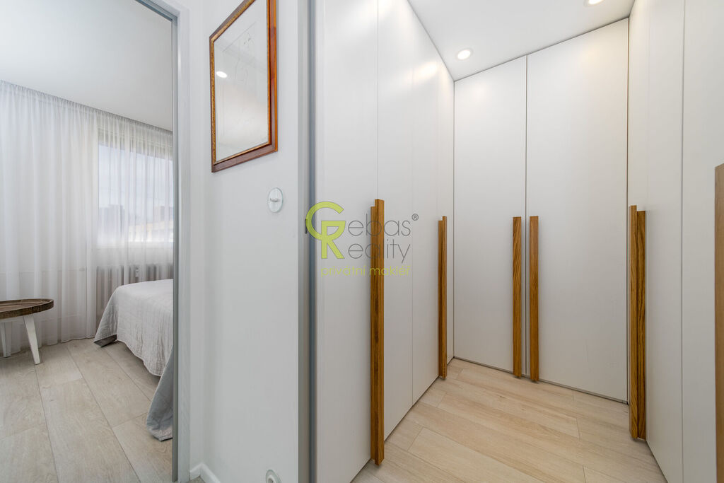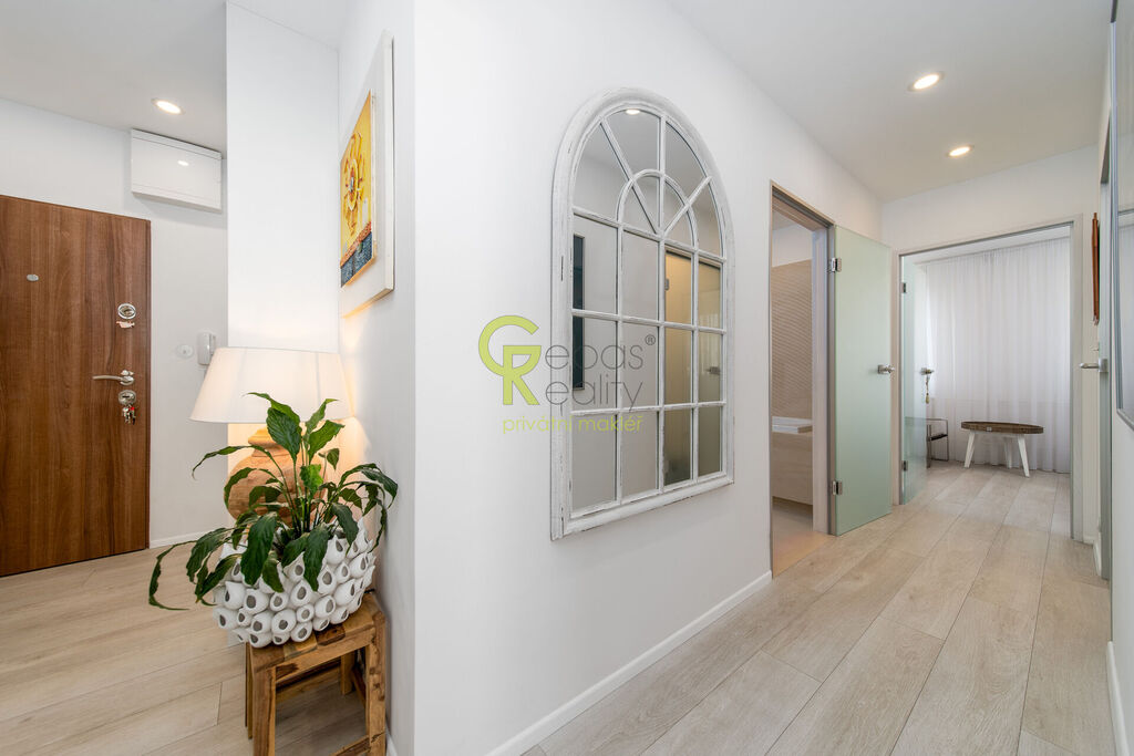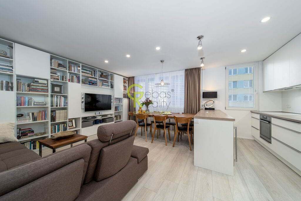 Ve výhradním zastoupení majitele si Vám k prodeji dovolujeme představit krásný, kompletně zrekonstruovaný byt 3+kk (původně 4+kk) o podlahové ploše 73 m², který se nachází v pátém nadzemním podlaží udržovaného panelového domu bez výtahu v ulici Horčičkova, v klidné části Prahy 11 – Háje. Byt prošel v letech 2017–2018 velmi kvalitní a designovou rekonstrukcí, při které byl kladen důraz na detail, funkčnost a nadčasovost. Bytový dům má pouze tři vchody a vlastní SVJ, novou střechu a kotelnu s tepelnými čerpadly, díky čemuž jsou zajištěny nízké provozní náklady a celkově vysoký komfort bydlení. Interiér bytu působí vzdušně a elegantně. Dominantou je prostorný obývací pokoj s kuchyňským koutem s velkorysou pracovní plochou, kde byla instalována kuchyňská linka vyrobená na míru, vybavená kvalitními spotřebiči, vinotékou a digestoří s odtahem do komína. V celém bytě jsou snížené podhledy s vestavěným osvětlením, vinylové podlahy, designové vypínače a zásuvky, včetně podlahových zásuvek v obývacím pokoji. Na velkých oknech jsou dřevěné rámy doplněné o hliníkové lamelové žaluzie značky Somfy s elektrickým ovládáním. V bytě jsou kompletně nové rozvody elektřiny, včetně třífázového připojení 380 V, přičemž celý byt je řešen výhradně na elektřinu. Koupelna je velmi prostorná a laděná do světlých, příjemných tónů. Nabízí pohodlnou vanu, toaletu a dostatek úložného prostoru. Pračka a sušička jsou šikovně vestavěny do skříně tak, aby nerušily celkový dojem a zachovaly čistou linii prostoru. Ložnice je světlá a klidná, vybavená na míru vyrobenou vestavěnou skříní, která nabízí rovněž dostatek úložného prostoru. Součástí bytu je také samostatná šatna řešená kompletně na míru s velkorysou kapacitou úložných ploch. V chodbě je instalováno noční LED osvětlení pro pohodlí i bezpečnost. Celý byt je výjimečně tichý díky kvalitnímu provedení izolací a dodatečnému zateplení mezi panelem a sádrokartonem. K bytu náleží sklep, který je fyzicky spojený ze dvou částí (v evidenci odpovídá podíl jedné poloviny). Byt se nachází v klidné lokalitě s výbornou dopravní dostupností a kompletní občanskou vybaveností. V blízkosti je stanice metra Háje (pouhé 2 minuty chůze), školy, školky, obchody, restaurace i oblíbený Milíčovský les s možností procházek a rekreace. Celkově se jedná o mimořádně povedenou nemovitost, která spojuje kvalitní rekonstrukci, moderní design a velmi příjemnou atmosféru. Byt je ve vynikajícím technickém stavu, připravený k okamžitému nastěhování bez nutnosti dalších investic. Pro další informace nebo prohlídku bytu nás kontaktujte, rádi se Vám budeme věnovat. (PENB - D)