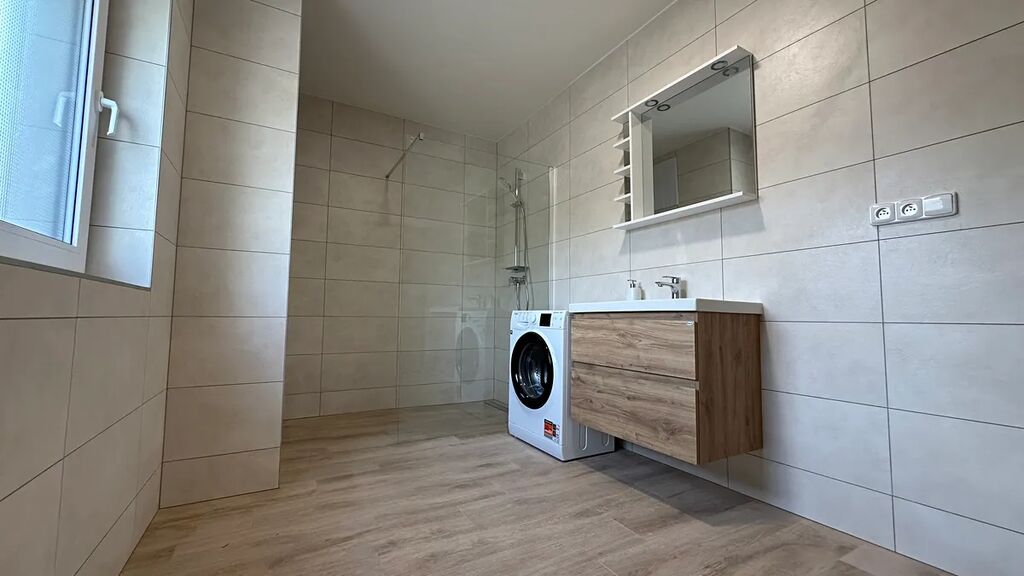 Nabízíme k pronájmu krásný byt 3+kk v novostavbě viladomu v lukrativní části Zlína - Prštné. Vybavení bytu je na nejvyšší úrovni, hliníková okna, venkovní žaluzie s elektrickým ovládáním, moderní kuchyňská linka na míru včetně všech kuchyňských spotřebičů (myčka, varná deska, trouba, mikrovlnná trouba a lednice). Podlahové topení - tepelné čerpadlo, klimatizace. Byt se nachází v přízemí domu. Dispozice: vstupní chodba, prostorný obývací pokoj s jídelním a kuchyňským koutem s výstupem na velkou terasu, koupelna se sprchovým koutem, umývadlem se skříňkou, pračkou a WC, další samostatné WC, dvě ložnice, jedna s vestavěnou skříní, šatna.. Výměra 85 m2 + terasa 15 m2.