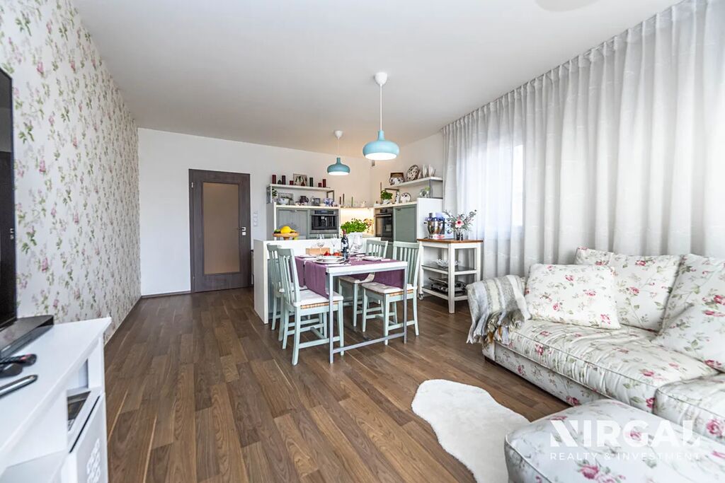 Dominantou bytu je velký, světlý obývací pokoj s francouzskými okny, který působí mimořádně vzdušně. Odsud se vstupuje na terasou o velikosti 12 m², která je ideálním prostorem pro odpočinek, grilování nebo posezení s přáteli. Interiér je v excelentním stavu, pečlivě udržovaný a působí velmi příjemně hned od prvního okamžiku.