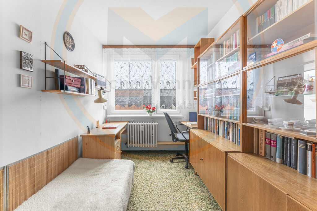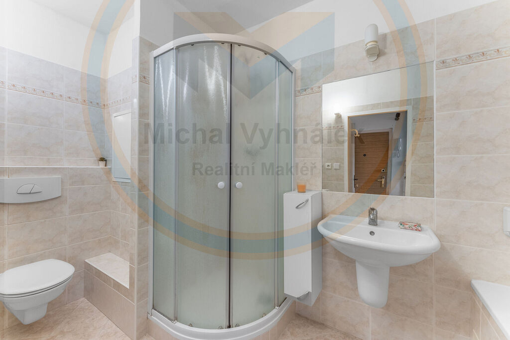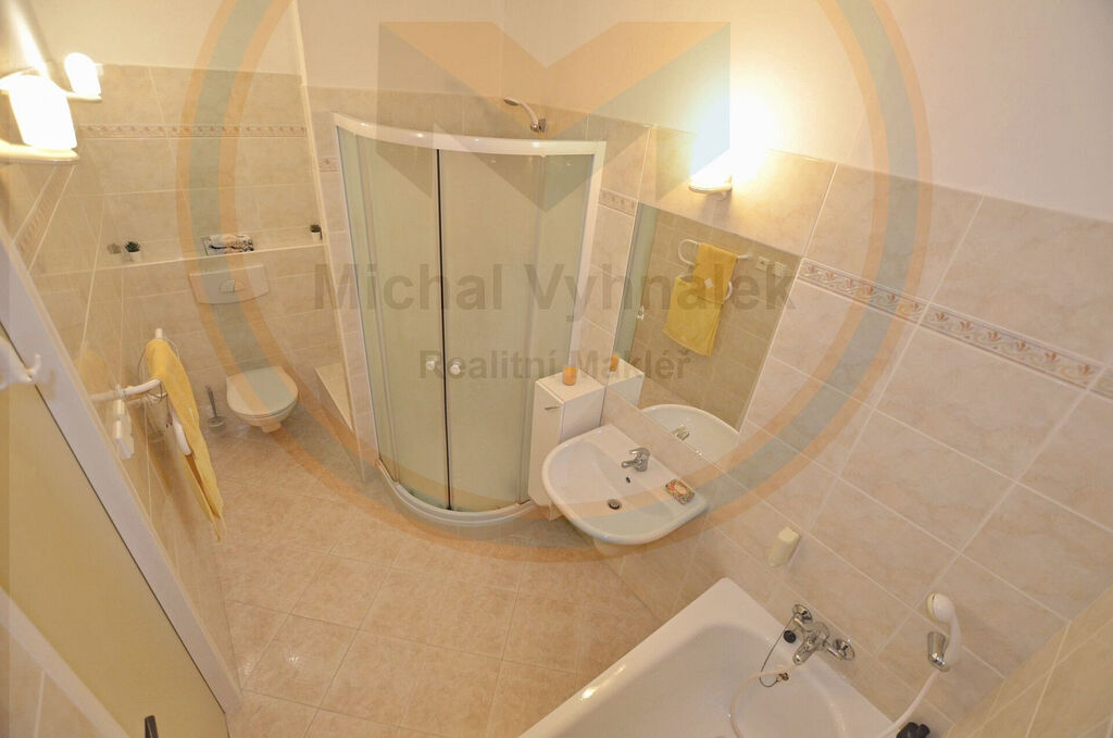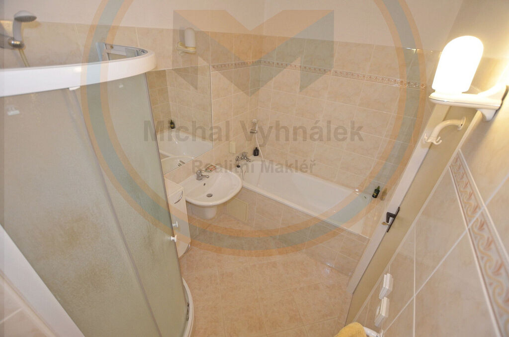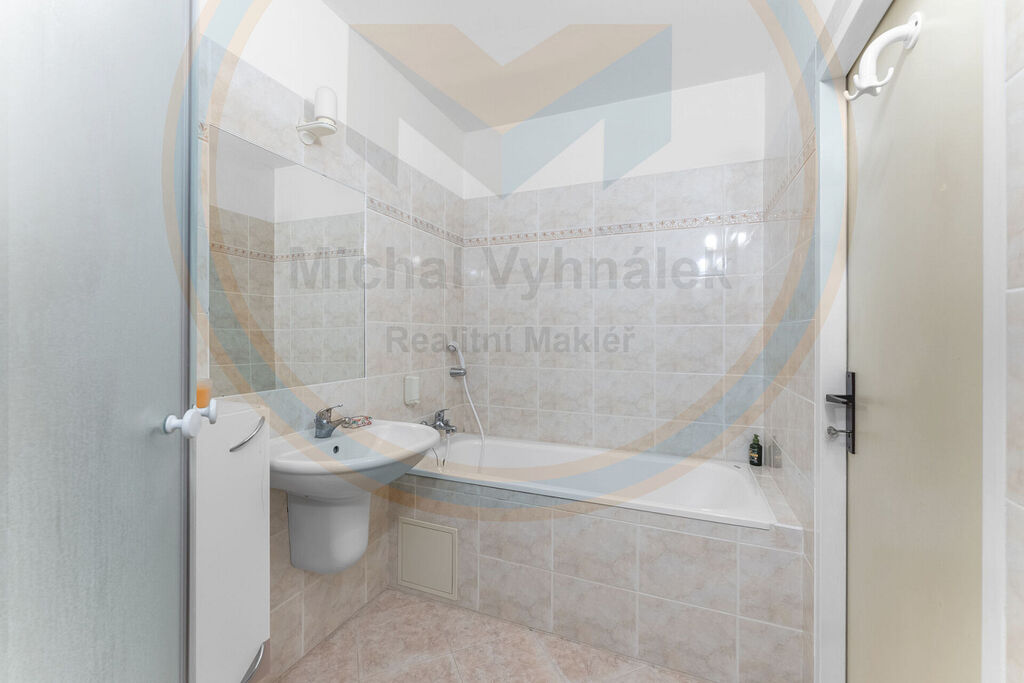 Koupelna je samostatná a nabízí vanu, sprchový kout i WC. Byt je udržovaný a ihned obyvatelný, interiér poskytuje prostor pro současnou nebo budoucí modernizaci interieru – ideální příležitost, aby nový majitel dal bytu svůj osobitý nádech.
