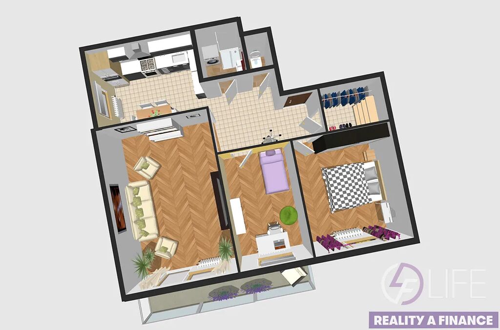 Byt má příjemnou dispozici – ze vstupní chodby se dostanete do kuchyně orientované na sever, obývacího pokoje s výstupem na balkon (5 m²), odkud si večer můžete vychutnat západ slunce i šumění Labe. K tomu nechybí dětský pokoj, ložnice, komora (1,5 m²), koupelna se sprchovým koutem a samostatné WC.