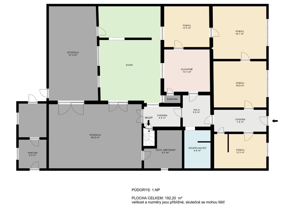 Klasika — poctivé zdivo, žádná lehká konstrukce.Dispozice 4+1, a hlavně — spousta prostoru.
