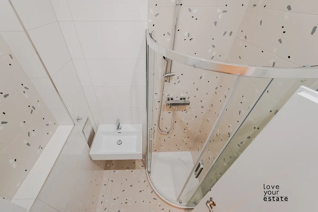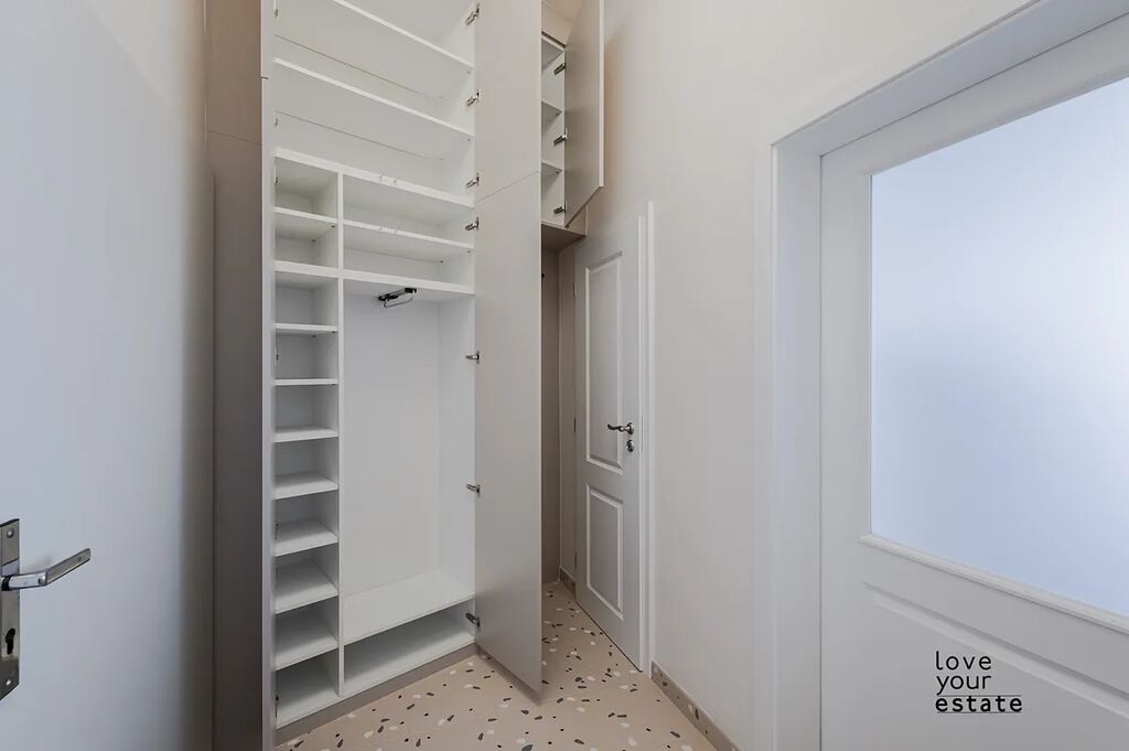 Fotografie jsou reálný stav bytu, není to vizualizace. V ceně bytu je již zahrnuta kuchyně se spotřebiči i vestavěné skříně na míru od truhláře, designové osvětlení i záclony na míru.