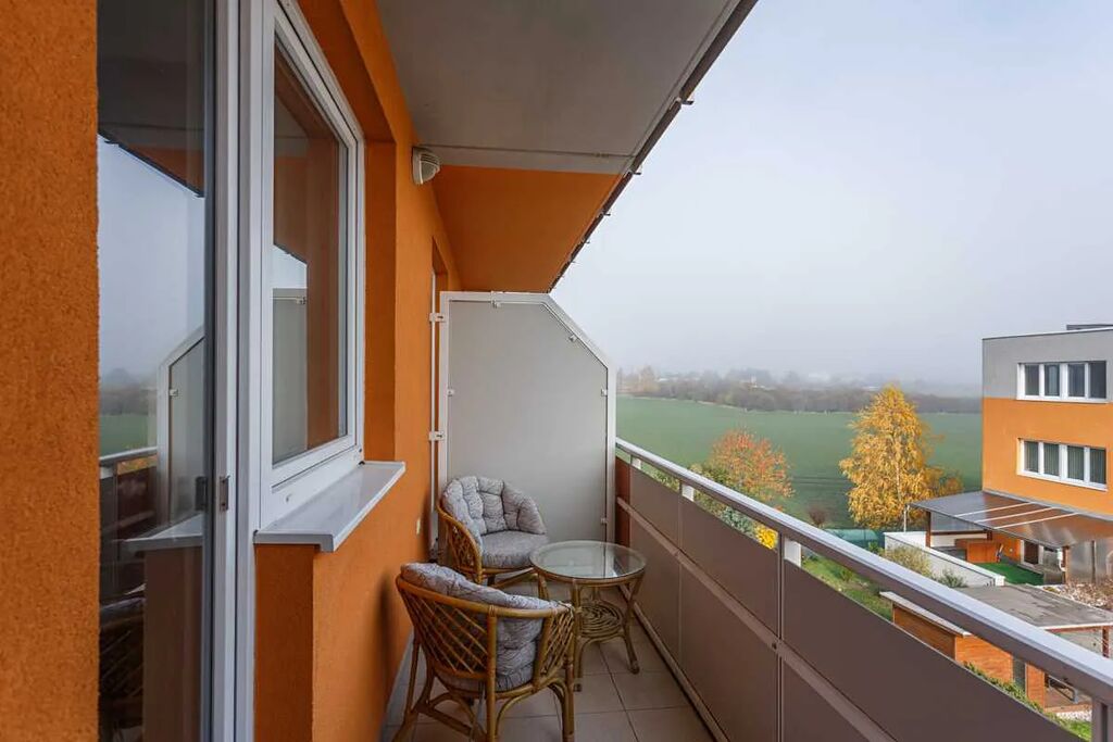 Bytová dispozice je promyšlená a praktická: prostorný obytný pokoj s kuchyňským koutem, samostatná ložnice, šatna, vstupní chodba a koupelna s toaletou. Z obou pokojů je vstup na lodžii — ideální pro relaxaci, ať už při ranní kávě, nebo večer. V koupelně je moderní walk-in sprchový kout a vyčleněné místo pro pračku i sušičku. Byt nabízí bohatě úložné prostory – vestavěné skříně v chodbě i ložnici, police v šatně. Kuchyň je vybavena kvalitní kuchyňskou linkou. Celkově byt působí velmi útulně.