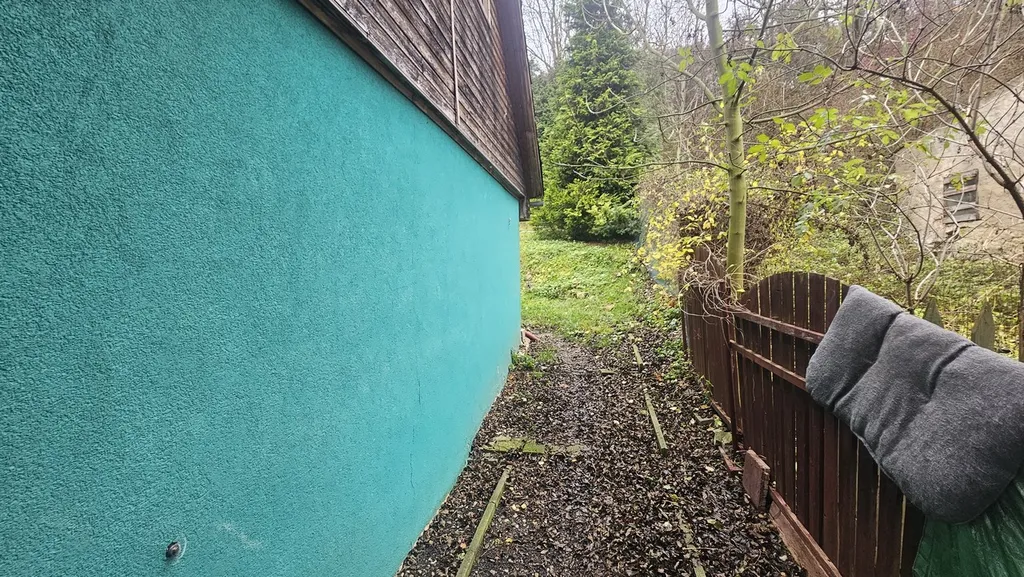 K domu náleží předzahrádka o výměře cca 90 m² a zahrada za domem o rozloze cca 259 m², celková plocha pozemku činí 554 m². Součástí je i garáž (aktuálně bez vrat).