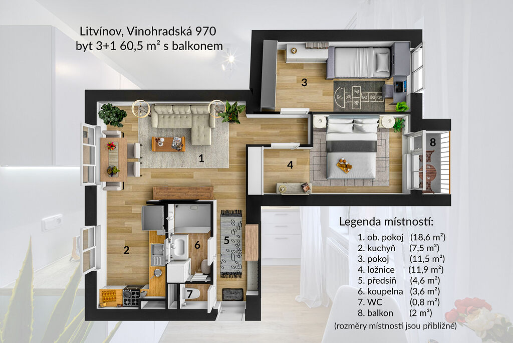 Pronájem krásného bytu 3+1, 60,52 m², Litvínov, Vinohradská 970