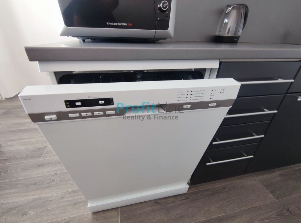 Součástí vybavení je kuchyňská linka se spotřebiči včetně myčky. Ostatní nábytek může zůstat dle dohody – jeho zachování není podmínkou pronájmu.