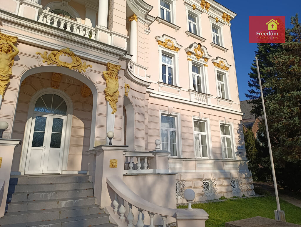 Prostorný vybavený byt v prvním podlaží vily, osobní vlastnictví. Obývací pokoj je spojen s kuchyn, ložnice a šatna, k dispozici je koupelna se sprchovým koutem a WC. Byt je zařízený.