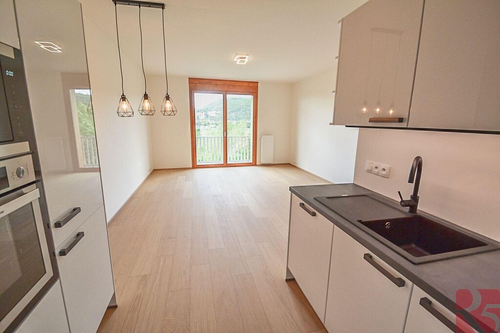 Nový byt 2+kk 55 m2, s balkonem 9 m2 a možností parkovacího stání za 1000,-Kč. Byt se nachází v projektu Riviéra Modřany z roku 2022.