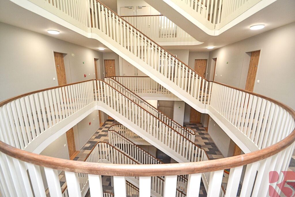 Prostorné pokoje prosvětlené velkými okny, které je možné zastínit venkovními žaluziemi. Z obou pokojů je možný vstup na lodžii. Dřevěné podlahy dodávají luxusní pocit. Velká vstupní chodba s komorou a místem na šatní skříň. Koupelna s vanou a toaletou.