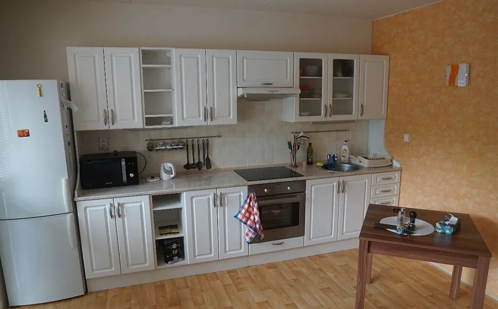 Byt se pronajímá zařízený (TV set a rozkládací gauč na fotce není součástí - k dispozici je možné lůžko 200x140 vč. matrace, jídelní stůl, 2 židle, 2 skříně, kuch. spotřebiče jako trouba, mikr. trouba, lednice, varná deska, digestoř, konvice, talíře/příbory/hrnce/skleničky/hrnečky) - dle dohody. Do bytu je zaveden internet (Pilsfree, T-mobile, Vodafone/UPC).
