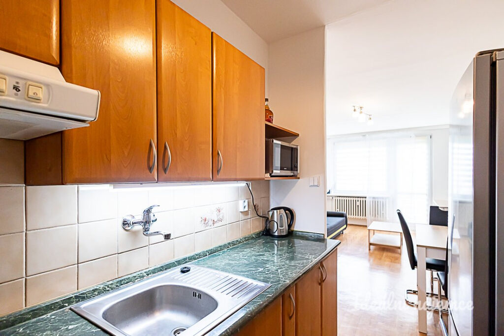Nabízíme k dlouhodobému podnájmu světlý a útulný byt 2+kk v klidné a vyhledávané lokalitě Praha 8 - Kobylisy. Byt o velikosti 45 m² se nachází v 9. patře panelového domu s výtahem. K bytu náleží také praktický sklep a lodžie.