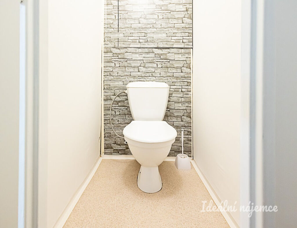 Byt je nabízen plně vybavený, což ulehčí starosti s jeho zařizováním. Kuchyně disponuje lednicí s mrazákem, elektrickou a mikrovlnnou troubou, varnou deskou, digestoří a také dostatkem úložného prostoru. Hlavní obytná místnost je zařízena pohodlným gaučem, konferenčním stolkem a jídelním koutem. K dispozici je také samostatný pokoj, který je vybaven manželskou postelí. Koupelna je vybavena vanou, umyvadlem, pračkou, toaleta je umístěna samostatně.