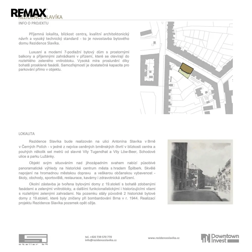 Novostavba moderního bytového domu Rezidence Slavíka, která vznikne v ceněné Brněnské čtvrti Černá Pole, na dohled od slavné vily Tugendhat, nabídne luxusní bydlení v centru města s krásným výhledem na Brněnské panorama s hradem Špilberk.