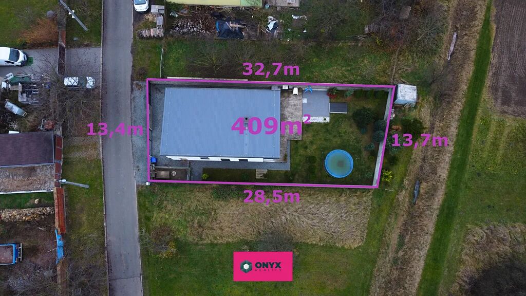 Za domem je již vybudovaná odpočinková zahrada, přičemž celková plocha pozemku 409m2, je optimální velikostí, dle současných trendů.