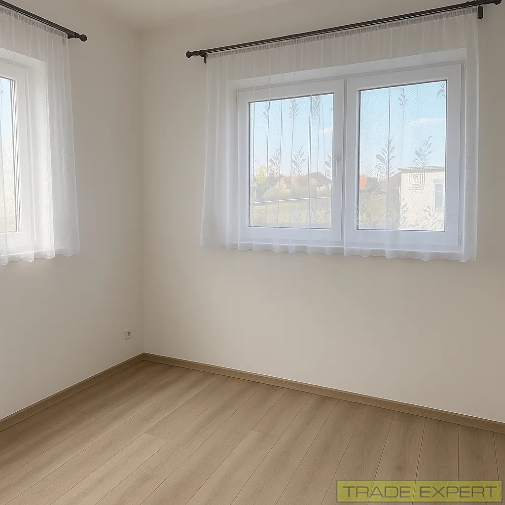 Dispozice: vstup do chodby s vestavěnou skříní a technickou místností a samostatným WC. Z chodby vstup do prostorného obývacího pokoje s kuchyňským koutem a vstupem na terasu. Z ovýv. pokoje schodiště do patra. V patře se nachází koupelna s vanou a WC a dále tři ložnice (12,1 m2, 10,3 m2 a 9,4 m2).