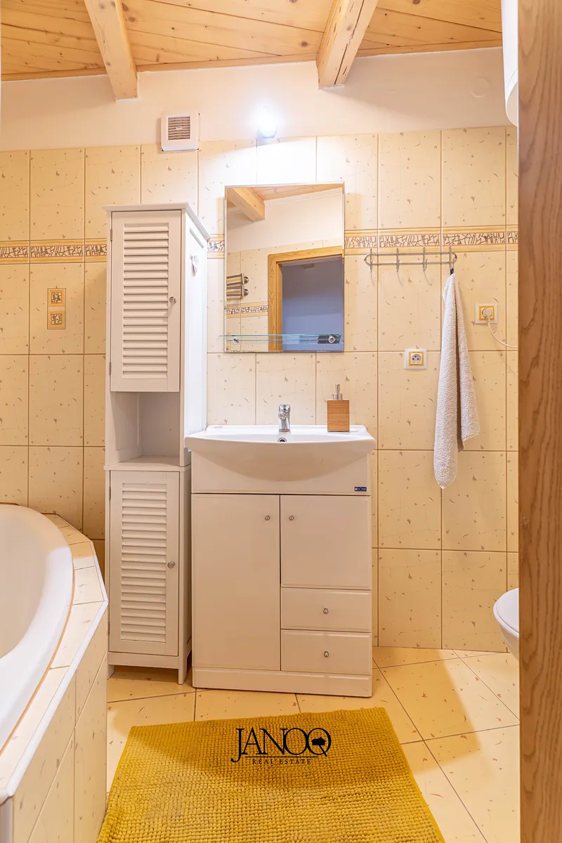 Interiér domu je prakticky rozvržený, což zahrnuje tři pokoje, které umožňují flexibilní využití prostoru podle vašich potřeb. Částečné vybavení dodává domu možnost přizpůsobit si bydlení podle svého vkusu.