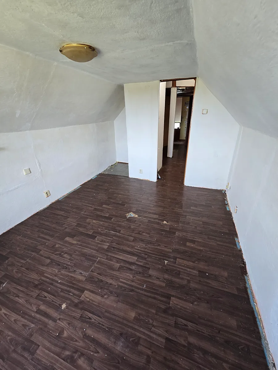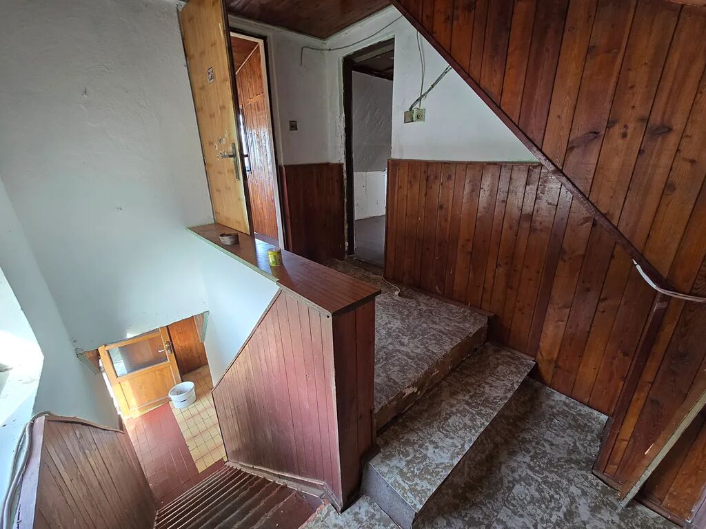 jedním podzemním podlažím, jedním nadzemním podlažím a podkrovím využitým pro bydlení (dispozice domu: 1. PP - 3x sklad, 1. NP – WC s koupelnou, pokoj, kuchyň, jídelna, předsíň. Podkroví - 3 x pokoj. Ve funkčním celku s domem jsou dva pozemky, které slouží jako zahrada. Rozloha pozemkú činí dohromady 767 m2 z toho zastavěná plocha 88 m2, vše v osobním vlastnictví a je součástí prodeje. Dům není napojen na veřejnou kanalizaci, studna s vlastní vodárnou. Ohřev vody el. bojlerem, vytápění lokální na tuhápaliva (krb), el. sporák.