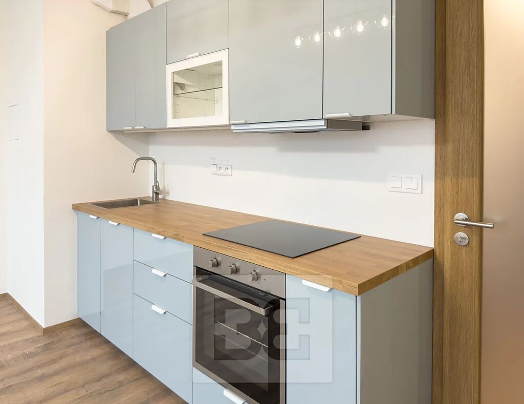 Byt je vybaven moderní kuchyňskou linkou se spotřebiči. Zbytek bytu je nevybaven.