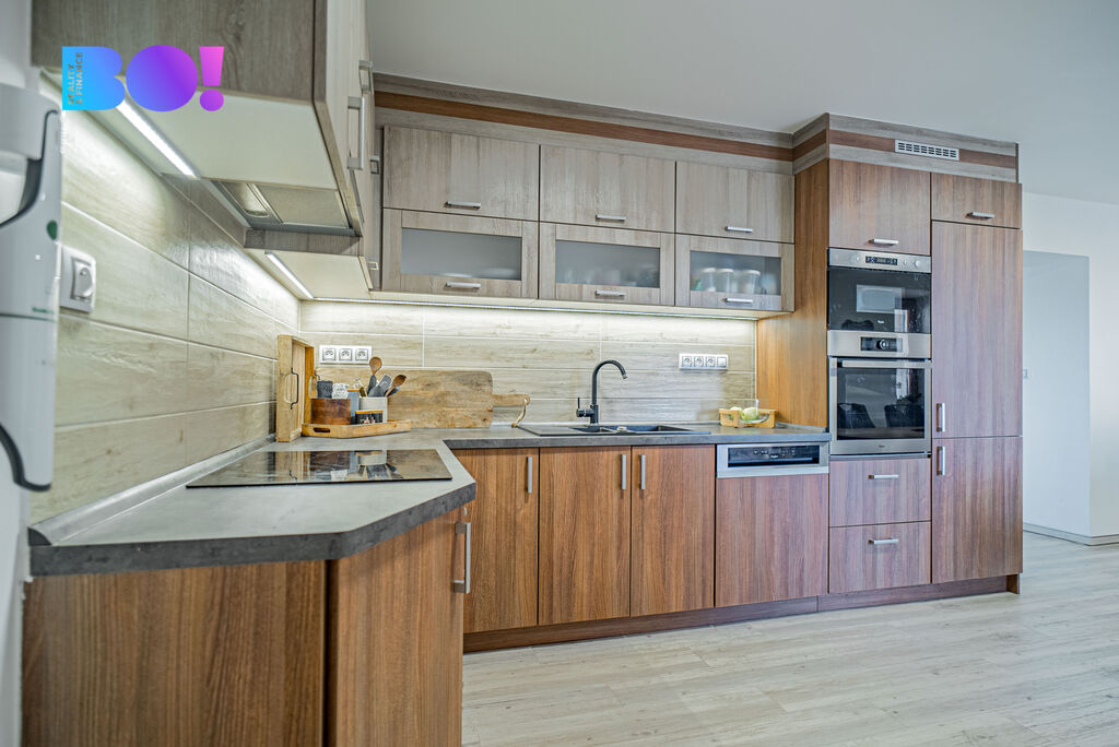 Obývací pokoj s velkou kuchyní a jídelnou