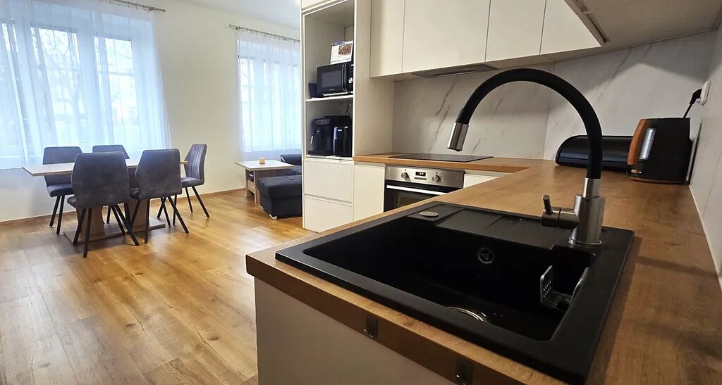 Exkluzivně Vám nabízíme ke koupi krásný byt po kompletní a zdařilé rekonstrukci v osobním vlastnictví s dispozicí 3+kk s celkovou užitnou plochou 73,4 m2 včetně sklepa /5,22 m2/, situovaný v 1. nadzemním podlaží cihlového domu po rekonstrukci v klidné části města Slaný, ul. Stehlíkova, chůzí 5 minut od Masarykova náměstí. V celém bytě elektrické podlahové vytápění, ohřev teplé vody el. bojlerem, okna plastová s izolačním dvojsklem a žaluziemi. S užíváním bytu jsou spojeny velice nízké měsíční zálohy ve výši 2.811 Kč + záloha na elektřinu spotřebovanou v bytě. Na podlahách v obytných částech položena vinylová podlaha, v koupelně dlažba. Pěkná a moderní kuchyňská linka je vybavena indukční varnou deskou s el. troubou a digestoří. V koupelně je k dispozici sprchový kout, umývadlo, pračka a sušička. Byt lze koupit s veškerým vybavením a zařízením a lze tak v něm ihned bydlet, případně jej využít k okamžitému pronájmu, který Vám rádi zprostředkujeme. K bytu je možné dále využívat parkovací stání cca 50 metrů od domu za měsíční poplatek 700 Kč. Na koupi bytové jednotky lze využít hypoteční úvěr, která Vám zcela zdarma vyřídíme u všech bank v České republice s nejnižší úrokovou sazbou na trhu. Více informací nebo prohlídku si domluvte telefonicky nebo mailem.