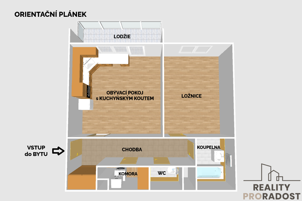 V zastoupení majitele nabízíme k pronájmu byt 2+kk s lodžií, s celkovou užitnou plochou (včetně lodžie) 60,6 m2, nacházející se v 1. patře (2.NP) bytového domu, v oblíbené a klidné lokalitě Novosadský dvůr v Olomouci.