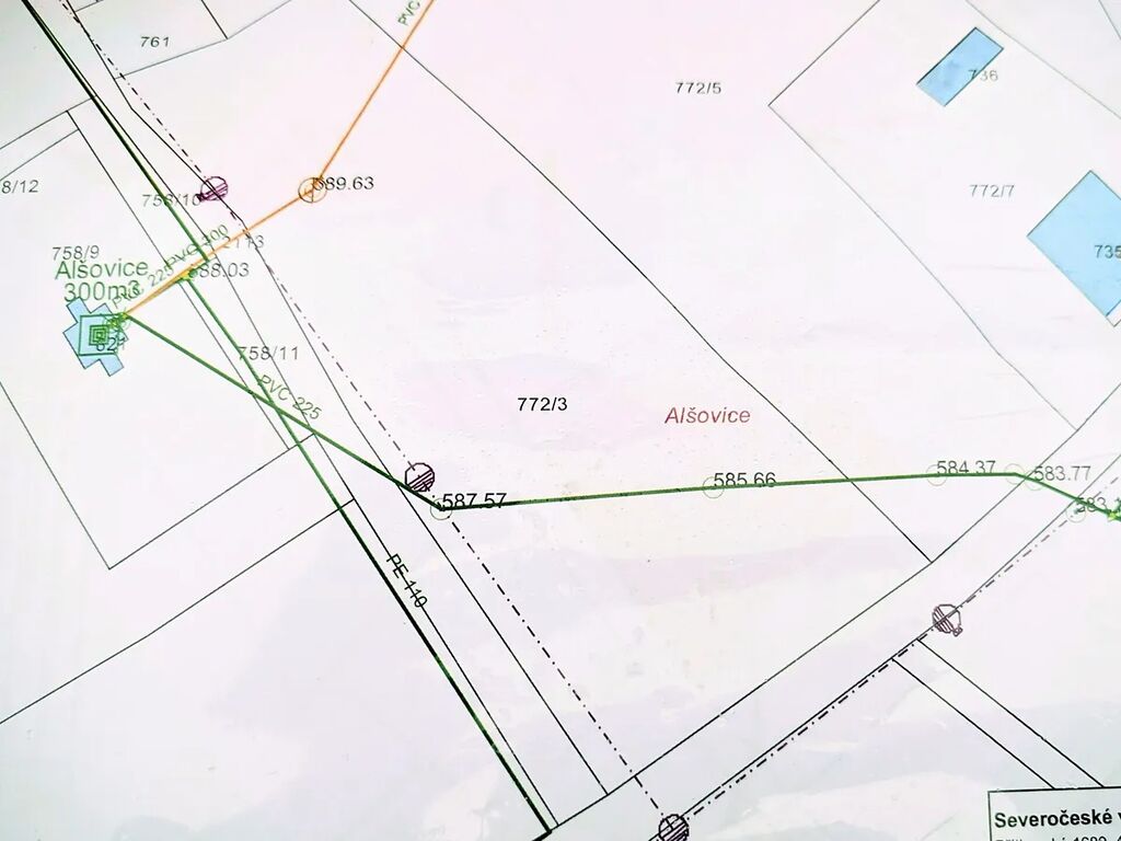 Nabízím k prodeji pozemek o výměře 2.405 m2 v klidné části obce Pěnčín, k.ú. Alšovice. Část pozemku o výměře cca 1.300 m2 je začleněna do ploch zastavitelných - plochy smíšené obytné-venkovské (SV) s koeficientem zastavění 0,15. Přes pozemek vede vodovodní řad DN 225 s ochranným pásmem 1,5 metru na každou stranu od vnějšího líce potrubí, který omezuje výstavbu rodinného domu pouze v jižním rohu pozemku o ploše cca 750 m2. Novostavbu lze připojit k obecnímu vodovodu a elektřině. Splaškovou kanalizaci je nutno řešit individuálně. Přístup celoroční po místní asfaltové komunikaci.