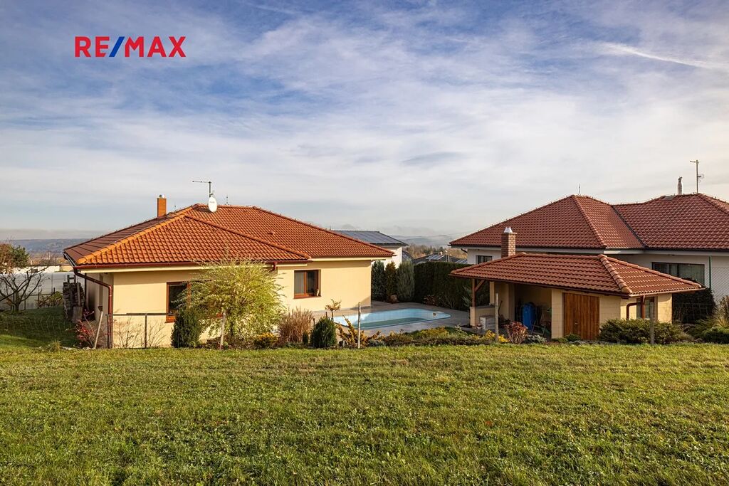 nízké provozní náklady díky tepelnému čerpadlu, vyhřívaný bazén, žulovou terasu, přírodu za domem, klidné místo a chytrou dispozici s dostatkem úložných prostor – včetně dvou šaten.