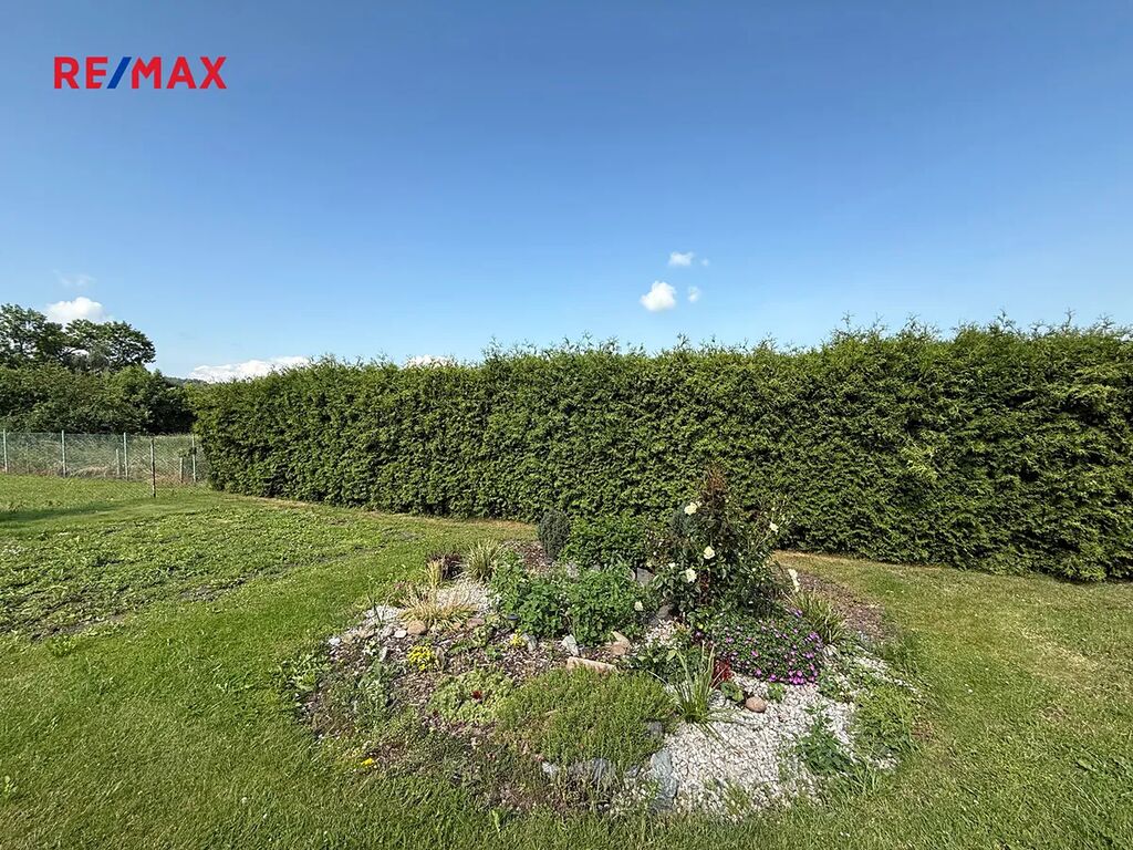Na udržované zahradě se nachází venkovní posezení s kamenným grilem, ideální pro relaxaci nebo rodinné setkávání. Celý pozemek působí velmi příjemně a je pečlivě udržován.