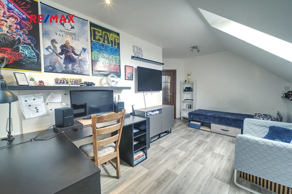 Součástí pozemku je zahrada o výměře 360 m² s bazénem 5 × 3 m s protiproudem, skleníkem a dvěma přístřešky vhodnými na nářadí či zahradní techniku.