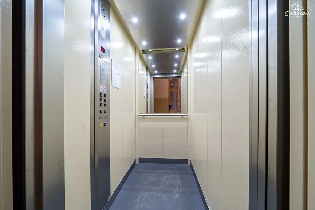 Byt o výměře 46 m² se nachází ve 4. patře cihlového domu s výtahem. Kuchyňská linka je vybavena elektrickým sporákem s digestoří, troubou a myčkou. Topení i ohřev vody zajišťuje plynový kombinovaný kotel.