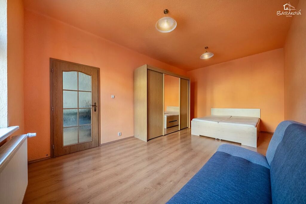 Byt se pronajímá zařízený – k dispozici je postel, velká šatní skříň i pohodlný gauč. Plastová okna s izolačními dvojskly jsou orientována do klidného vnitrobloku, což zajišťuje příjemné a tiché bydlení.
